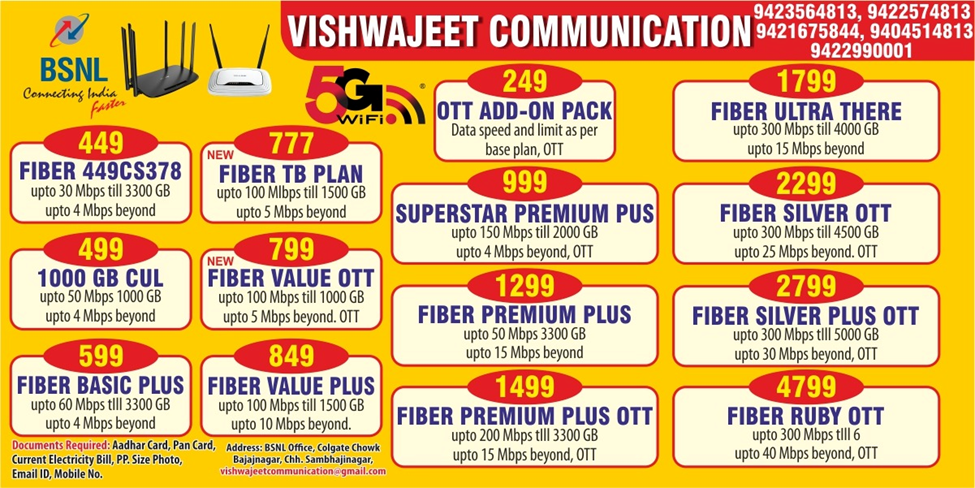 Since 2020, Vishwajeet Communication has been committed to delivering high-speed, reliable internet solutions. As a registered Telecom Infrastructure Provider (TIP) with BSNL Bharat Sanchar Nigam Limited , we are proud to operate under TIP Category IV A / LC and TIP Code vishwajeet_mhagd in Zone AGD SSA and Airtel channel Partner from managing areas.